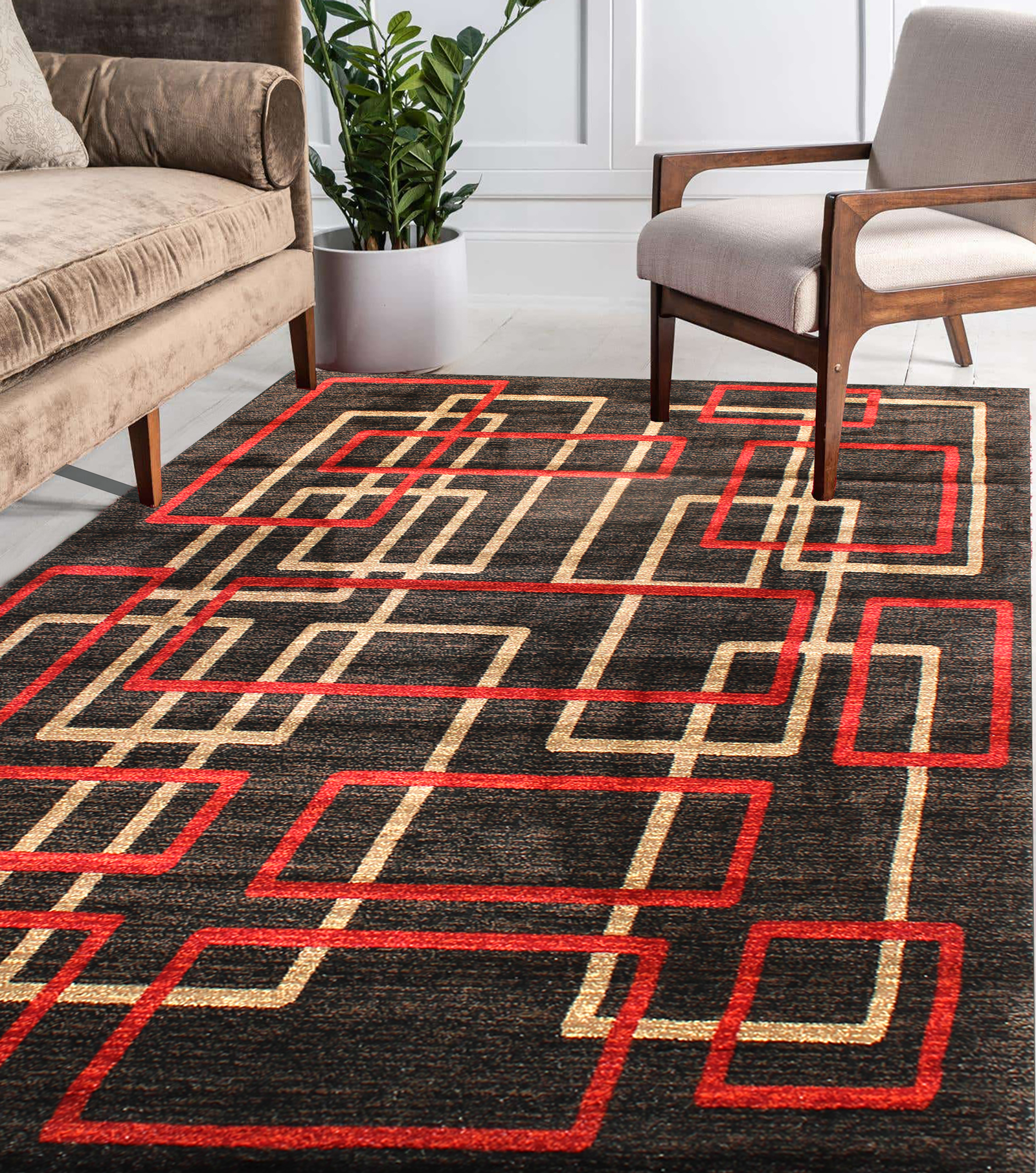Home Area Rugs Chester Modern CH-43 Brown & Red Chester Hand Carved