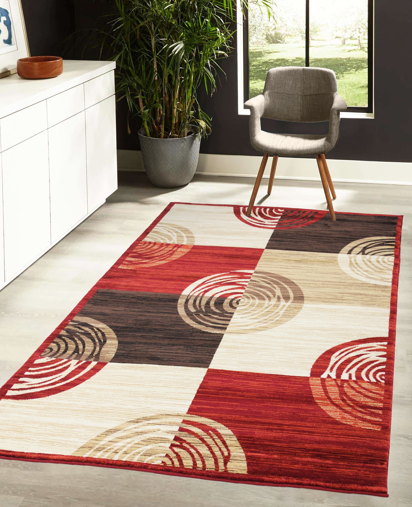 Home Area Rugs Chester Modern CH-47 Brown & Red Chester Hand Carved