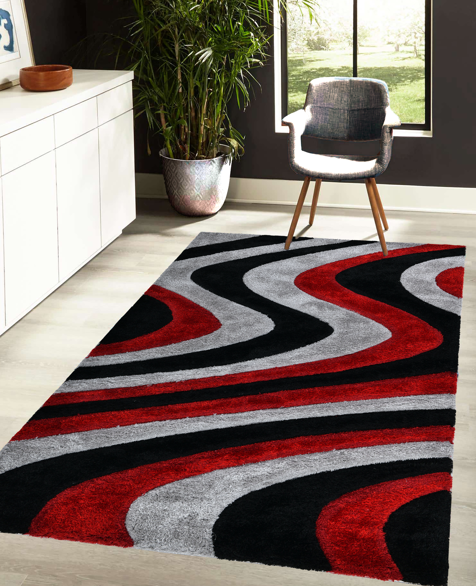 Home Area Rugs New York City Shaggy NYC13 Wave – Red & Grey