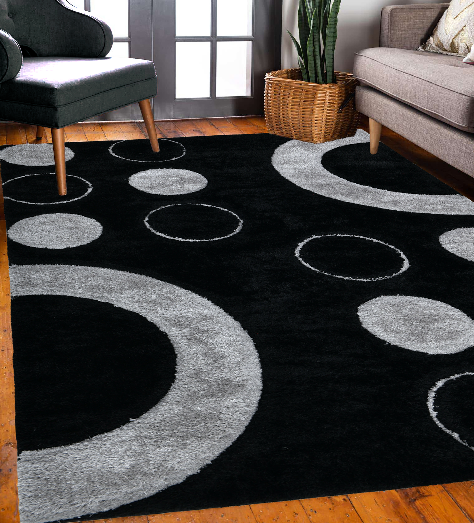 Home Area Rugs New York City Shaggy NYC91 Bubble – Black & Grey