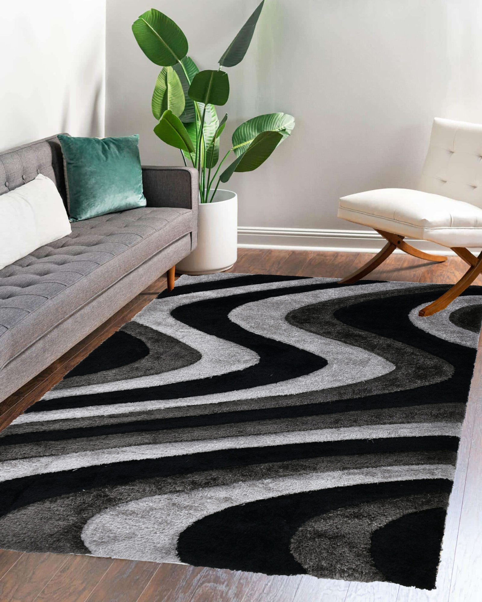 Home Area Rugs New York City Shaggy NYC18 Wave – Black & Grey
