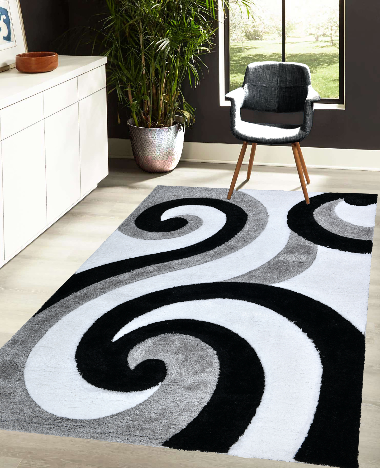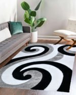 Home Area Rugs New York City Shaggy NYC21 Swirl – Black & White