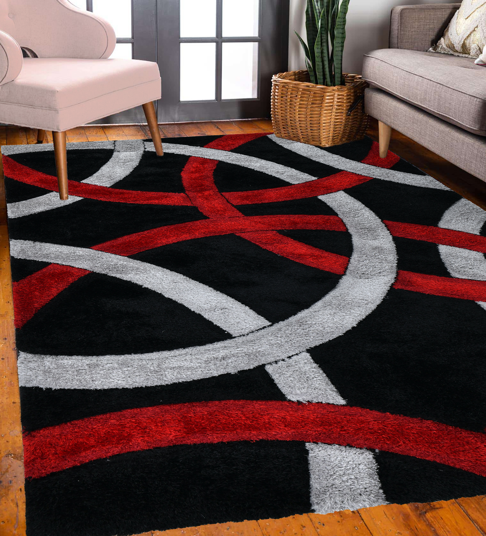 Home Area Rugs New York City Shaggy NYC73 Infinity Circle – Red & Grey